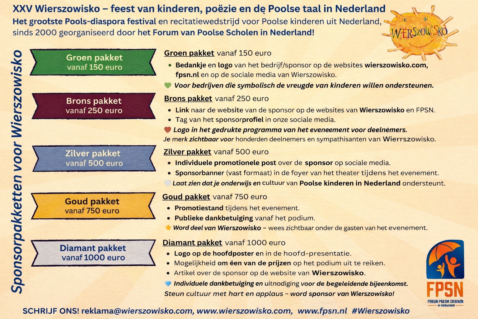 Wierszowisko to Festiwal Polskiej Poezji dla dzieci w Holandii. To konkurs recytatorski, który organizuje stowarzyszenie Forum Polskich Szkół w Holandii od ponad 20 lat!